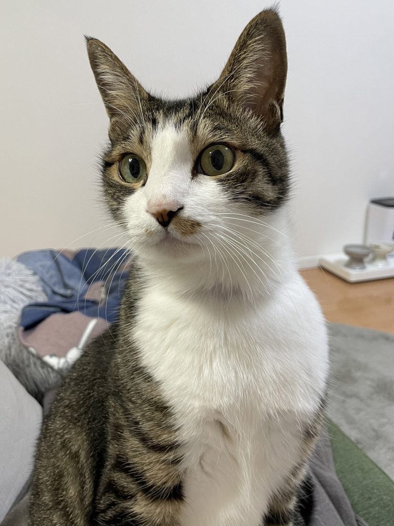 この写真を見る限りだと「落ち着いた子なのかな?」と感じてしまうかもしれませんが、実際には活発で表情豊かなユーモア担当のねこなのです。であれば、やっぱりニコニコした写真のほうがその子らしさは表現しやすいです。